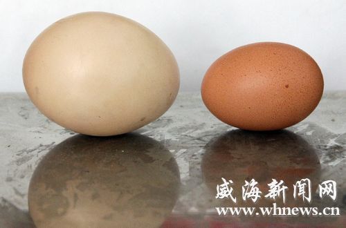 巨蛋(左)與一個(gè)普通雞蛋放在一起。(記者 于啟波 攝) “這枚雞蛋可真大。”昨日,山東威海市民林先生稱,除夕那天,他父親家中養(yǎng)的一只母雞產(chǎn)下了一枚巨蛋,重量達(dá)167克,接近一枚普通雞蛋重量的3倍。 “老家養(yǎng)的一只母雞產(chǎn)下了一枚巨蛋,不知道能不能申報(bào)吉尼斯世界紀(jì)錄。”昨日上午,老家山東省文登市宋村鎮(zhèn)宋疃莊村的市民林先生與記者取得聯(lián)系時(shí)稱,這枚雞蛋已被他帶回市區(qū)。當(dāng)日下午,記者聞?dòng)嵹s到林先生的住處。林先生的妻子拿出一個(gè)紅色盒子,小心翼翼地將一枚大號(hào)雞蛋拿出。記者看到,這枚雞蛋外殼顏色較淺,呈橢圓形,表面較為光滑,個(gè)頭確實(shí)比普通雞蛋大許多。大家找來一臺(tái)電子秤為其稱重,電子秤顯示重量為167克。經(jīng)測量,這枚雞蛋長達(dá)9厘米,高約7厘米。隨后,記者又挑選了一枚普通的大個(gè)雞蛋,電子秤顯示的重量為66克,也就是說,這枚巨蛋的重量是一枚普通雞蛋的近3倍。 “我們一家人還從來沒見過這么大的雞蛋,大家伙都覺著稀奇。”林先生說,去年春天,他的母親從商販?zhǔn)掷镔I了5只小雞并將其散養(yǎng)。今年1月22日(除夕)下午3時(shí)許,母親像往常一樣來到雞窩,發(fā)現(xiàn)這只母雞下了這枚巨大的雞蛋。最后,林先生將這枚雞蛋帶回了威海。 后來,林先生的親戚將這枚巨蛋的照片傳到網(wǎng)上,引起了網(wǎng)友的關(guān)注,不少網(wǎng)友鼓勵(lì)林先生申報(bào)吉尼斯世界紀(jì)錄。這之后,林先生因不知道該如何申報(bào)吉尼斯世界紀(jì)錄,又不知道如何保存這枚巨蛋而產(chǎn)生了不少煩惱。 |