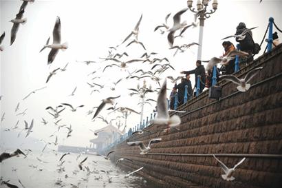 ????“春節(jié)期間,海邊的海鷗好像多了不少”、“碧海藍天中成片海鷗翱翔,真是美景。 ”近日,不少市民致電本報熱線82860085,反映前海一線有成千上萬只歡快的“精靈”在空中嬉戲著,引來無數(shù)攝影愛好者的“長槍短炮”,游人也忍不住駐足觀看,儼然成了島城冬日奇景。昨日,記者探訪前海一線看到,在棧橋、八大關、澳門路(西)、奧帆中心等四處海面,海鷗最為集中。專家解釋稱,由于島城多處前海灣的風力小、結(jié)冰少、食物多,引來眾多海鷗聚集,人鷗相戲也為島城增添了一道別樣的景致。 ????鷗樂園1棧橋 ????市民自掏腰包喂海鷗 ????昨天下午,記者在棧橋看到,美麗的海鷗時而俯身靠近卷著波浪的海面休憩,用美麗的紅嘴唇小酌一下咸咸的海水,時而成群起飛向遠方翱翔,在海天一色之間自由馳騁;時而靠近回瀾閣的岸邊向游客討食吃,一派熱鬧景象。記者走在回瀾閣長廊上發(fā)現(xiàn),有好幾位婦女在銷售海鷗食,一元錢一袋,里面是一截截的油條。不少女游客和小朋友都喜歡買海鷗食,游客們時不時地將油條高高拋向天空。海鷗的眼睛都很尖,只要一看到食物,都用風一般的速度沖過去,一些食物落到了海面上,沒搶到食物的海鷗就緊盯目標,一眨眼的工夫就將食物吞入腹中。 ????鷗樂園2八大關 ????小朋友唱起海鷗之歌 ????“快看,怎么那么多海鷗,真是太漂亮了! ”昨天下午,記者在八大關木棧道邊的礁石上看到,來自濰坊的小趙和男友掏出相機拍個不停,“我們這是第三次來青島,但這是第一次碰到這么多的海鷗。我要是回去和朋友們一說,給他們看看照片炫耀一下,他們準等不及了會專門來青島看海鷗。 ”記者看到,成千上萬的海鷗在海邊歡快地嬉戲,成群飛累了就扎到水中覓食,海邊礁石上也擠滿了休憩的海鷗。有了海鷗的點綴,礁石也仿佛有了生命。 “海鷗,海鷗,我們的朋友,你是我們的好朋友。 ”一名小朋友看到成群飛翔的海鷗非常興奮,給身旁的姥爺唱起了音樂課上學到的歌曲。 ????鷗樂園3奧帆中心 ????群鷗劃過浪漫情人壩 ????昨天下午,記者來到奧帆中心,在情人壩北側(cè)碼頭處,不時有上千只海鷗成群歡叫著從帆船頂端飛過,引來游人陣陣尖叫。“帆船和海鷗加在一起,這風景太美了,帆船之都到處都能給人大海的感覺。 ”從德州來青旅游的高先生夫妻倆被奧帆中心的美景吸引了,“我們常來青島,正是這些可愛的小家伙,讓青島的大海更加有活力,青島沿海一帶也變得更漂亮了。”漫步在情人壩長廊上,可以看到不少海鷗在大壩兩側(cè)自由飛翔,飛累了的海鷗會落在停泊碼頭的游船桅桿上休息。從距離五四廣場海岸較近的礁石到奧帆中心東側(cè)海岸,到處都能見到這些快樂的海鷗,讓情人壩更顯浪漫。 ????鷗樂園4澳門路(西) ????攝影師云集抓拍海鷗 ????昨天下午,記者來到澳門路西側(cè)附近的海濱木棧道,家住東海路附近的攝影師劉先生帶著三腳架,背著專業(yè)相機在岸邊拍攝。劉先生告訴記者,他不明白今年是什么原因,導致無數(shù)海鷗聚集在這個地方,為了拍好海鷗,他每天早晨都起個大早,趁上班前趕緊拍一些海鷗的照片,而下班后又會在海邊一直守候到天黑,周末更是一整天都等在海邊抓拍。和劉先生一樣,記者發(fā)現(xiàn)聚集在這里拍攝海鷗的攝影師有數(shù)十人,“長槍短炮”齊上陣,有的更是冒險跑到海邊礁石上拍攝。 ????“挽留海鷗”18年來“人鷗同樂”成一景 ????據(jù)介紹,海鷗已被列入國家林業(yè)局2000年8月1日發(fā)布的《國家保護的有益的或者有重要經(jīng)濟、科學研究價值的陸生野生動物名錄》。青島素有“中國東部候鳥驛站”之美譽。為喚醒廣大市民的愛鳥、護鳥意識,《青島晚報》編輯部與青島市林業(yè)局從1994年12月1日開始,率先在全國沿海城市開展了“挽留海鷗行動”,在青島灣的棧橋東側(cè)投放飼料,吸引更多的海鷗來此做客。在“挽留海鷗行動”開展期間,本報每天都會刊登根據(jù)大海潮汐測算出的最佳投食時間,每天均有幾百人自愿參與喂海鷗,節(jié)假時甚至可達上千人,海鷗已經(jīng)和島城市民成了好朋友。 ????從兩種海鷗2000只到現(xiàn)在15種10萬只 ????昨天,島城鳥類保護專家王希明告訴記者,1994年前后,青島灣只有兩種海鷗,是紅嘴鷗和銀鷗,僅有2000只左右。到了2007年,島城海鷗種群發(fā)展到9個,數(shù)量約5萬只。如今,島城海鷗的種群已達到15個,數(shù)量也增加到了10萬只。 ????據(jù)悉,我市的鷗型目鳥有兩類,分別是鷗類和海雀類,共15個品種,包括紅嘴鷗、黑尾鷗、灰背鷗、魚鷗、海鷗、燕鷗、白額燕鷗、黑枕燕鷗、棕頭鷗、黑嘴鷗、三趾鷗、白翅浮鷗、須浮鷗、銀鷗、扁嘴海雀。其中,9種是冬候鳥。在島城最常見的三種海鷗是紅嘴鷗、銀鷗和黑尾鷗,紅嘴鷗是冬候鳥,每年10月末到第二年4月底在青過冬,隨后繼續(xù)往北飛,而銀鷗和黑尾鷗則是一年四季長留青島。 ????豐富食物加投喂形成四個賞鷗處 ????這些年,為何越來越多的海鷗喜歡來青島并在海邊長期逗留而形成賞鷗“四大處”?對海鷗有一定研究的島城動植物專家于濤介紹,冬日里食物相對缺乏,而青島前海海灣較多,海灣內(nèi)風輕浪小,而且小魚較多,食物豐富且是較少結(jié)冰的天然避風港,這使得海鷗成群聚集在這些海灣地區(qū),同時也與市民的挽留和呵護分不開。據(jù)悉,周邊一些餐館經(jīng)常會把小魚和