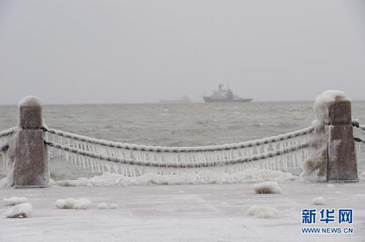 青島迎入冬來最低氣溫 匯泉灣罕見結冰(圖)