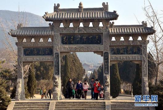 幾位游客穿過嵩山少林景區內的石牌坊,準備前往少林寺參觀(2012年1月31日攝)。自2011年底全國旅游景區質量等級評定委員會對嵩山少林景區下達了限期整改通知后,景區的旅游市場受到很大影響,今年元月份,景區游客人數和門票收入都有較大幅度的下滑。據登封市旅游局的一份統計數據顯示,今年春節期間少林景區游客接待量為6.1萬人次,比2011年同期下降了41.8%,門票收入則下降了13.7%。(新華社記者王頌 攝)