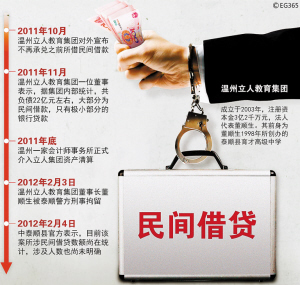 2012年2月3日,因涉民間借貸糾紛,溫州立人教育集團有限公司董事長董順生已被刑拘,另有5名董事也被采取刑事強制措施。目前,這一看似“普通的民間借貸”事件正在悄然變成“非法集資”的刑事案件。