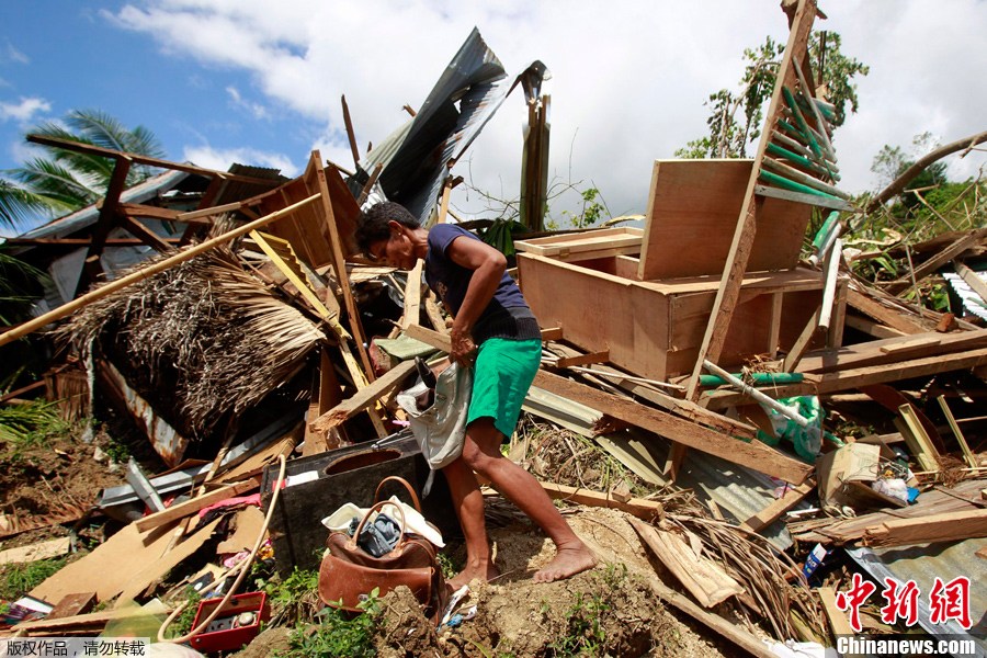 菲律賓官員表示,2月6日襲擊中部東內格羅斯省的6.9級強震目前已造成52人死亡,其中29人恐在山體滑坡中被活埋。圖為2月8日,一名婦女在房屋廢墟中尋找可用的物品。