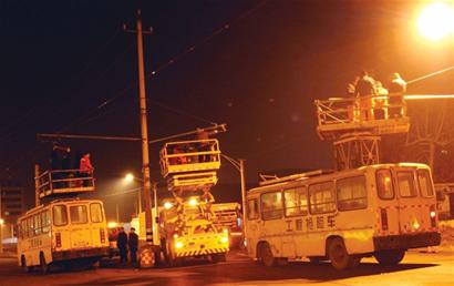 ????為給青島四流中路跨線橋工程讓路,前夜昨晨,公交電車公司供電所的30余名搶修工人連續(xù)奮戰(zhàn)4個小時,將鄭州路至唐河路300余米電車線網(wǎng)移至新開辟的輔道上,首次棄用使用40多年的老線網(wǎng)。本周五晚間,工作人員還將移動同方向的上行電車線網(wǎng),屆時跨線橋施工調(diào)流前期工作將完成,調(diào)流工作有望本周六開始。 ????電車線網(wǎng)移至輔道 ????前夜昨晨,在最后一輛公交5路電車停運(yùn)后,電車公司供電所組織的所有電車工程車立即投入到電車線網(wǎng)的遷移工程中。記者趕到現(xiàn)場看見,從鄭州路路口口開始,四輛高臺作業(yè)車就依次分布著。公交電車公司供電所書記李榮告訴記者,此次線網(wǎng)改道工程是他們最近幾年來所碰到的最大工程,為保證在今天凌晨3時40分首輛5路電車開出前完工,當(dāng)晚他們共出動了四輛高臺作業(yè)車和30余名工作人員。 “除了搶修值班的,全都來了。 ”此次改道,工作人員要先將從鄭州路至唐河路下行的公交5路和30路電車線網(wǎng),移至道路東側(cè)的調(diào)流輔道上。由于涉及到兩條電車線,工作人員需要架設(shè)近千米長的新電車線網(wǎng)。 ????40年老線首次棄用 ????在施工現(xiàn)場,工作人員首先利用高臺車將電車線網(wǎng)剪斷。 “年前修建調(diào)流輔道時,我們就在上面鋪設(shè)了電車專用電線桿。”李榮告訴記者,一般每隔幾十米就會有一個電線桿,上面設(shè)有夾板以固定電車線網(wǎng)。當(dāng)晚施工,工作人員先將鄭州路至唐河路段的夾板放開,這樣一來,該路段所圍成區(qū)域內(nèi)的電車線就全部松開了。李榮表示,此次跨線橋施工需要近一年左右時間,因此他們需要把所有廢棄電線全收集起來。此次被棄用的電車線,都是1965年首輛電車正式開通以來使用的老線,雖然每隔8年就會更換一次,但徹底棄之不用還是40多年來第一次。 ????勝利橋老站臺將拆 ????為了給跨線橋工程讓路,設(shè)置在鄭州路與四流南路交會處附近的公交5路原候車站臺,將會被進(jìn)一步拆除。記者在現(xiàn)場看見,原來十米多長的站臺只剩下十幾根立柱立在站臺上,柱子上還殘留著剛粉刷不久的粉紅色油漆。由于沒有專門候車的地方,乘客們只能站在路邊等車。(記者 徐美中) |
