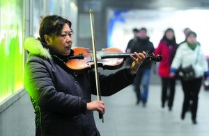 2月13日,陳惠芳在武漢一個地下通道里拉小提琴。