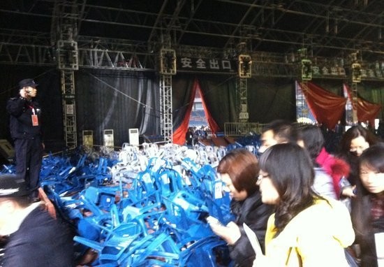 前晚繼發致歉微博,經紀人陳家瑛發表聲明后,10時45分,重慶市人民政府新聞辦公室發表微博稱:“今晚八時許,市奧體中心演唱會現場A3區座位邊緣席因墊板移位導致部分座位滑塌,致11人腿部受輕微傷。目前,現場觀眾已全部疏散,傷員已送往醫院救治,事故調查及處置正在進行中。