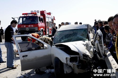 渝昆高速昭通境內白坡塘段交通事故現場 事故發生幾分鐘后,剛剛開完全市公安工作會議的昭通市人民政府副市長、市公安局局長王宇在返昭途中,正好遇見此次交通事故。王宇副市長當即指示停車,一邊組織隨行人員搶救,一邊指令交警、消防民警火速趕赴現場救援。王宇副市長立即組織同行的民警和群眾對躺在地上的3名傷員進行施救,并指令隨后趕到現場的禁毒支隊支隊長張鑫漢等同志駕車將3名傷員立即送往醫院搶救。 為在最短時間內搶救生命,將被困在轎車內的1名婦女和1名老人迅速施救出,王宇副市長帶領隨后趕到現場的市公安局警令部主任王文生和民警,與群眾一道用鋤頭、撬胎棍等簡陋工具,將已嚴重變形的車門撬開,將被困在車內的婦女和老人成功救出后立即送往醫院。隨后,王宇副市長帶領民警和群眾又試圖將卡在方向盤與座位之間的駕駛員救出,但由于工具簡陋,同時擔心對駕駛員造成二次傷害,雖經多次嘗試努力,仍未成功。為消除駕駛員的恐慌心理,王宇副市長又親自與駕駛員不斷談話,舒緩其情緒。使幾乎沒有信心的傷員有了還生的希望。 |