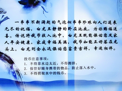 實(shí)拍:有人公然劃船撈錢卻不見公園方制止 連日來,記者接到有市民報(bào)料稱:在南京江北珍珠泉公園里,見到一男一女劃著一條小船,用3米多長(zhǎng)的樹枝套著一塊磁鐵,在景區(qū)里的一個(gè)湖中偷偷“吸金”,將游客扔進(jìn)湖中的硬幣吸上來,據(jù)稱,最多一天可“吸金”100多元。 一名目擊者稱,他們看到這一對(duì)中年男女劃著一條小船,在湖中晃蕩,不時(shí)用一根棍子在水中探來探去,并拿上拿下的。細(xì)看之下,這根棍子上竟然套著一個(gè)黑色的磁鐵,在水下探了一會(huì)兒后,就有白晃晃的東西被粘上來,竟然都是一些硬幣。不一會(huì)兒,就有十幾枚硬幣被撈了上來,被女子從磁鐵上摘下,扔到船中。 附近一名拍攝婚紗照的師傅稱,經(jīng)常見到這樣的人劃著一條小船,在景區(qū)的湖中不停地滑動(dòng),然后將磁鐵放下去,拉上來就能看見磁鐵上吸了不少1元硬幣,然后被放入船上的一塑料桶內(nèi)。而據(jù)透露,這些人最多一天能吸到100多元。 記者在該景區(qū)的源頭看到有一塊告示,上面寫明:游客向水中扔錢幣,可保全家平安;如果扔到龍頭上,則全家富貴吉祥等等。但其中也有一條規(guī)定,就是不得撈取水中的錢幣。但事實(shí)并非如此,這些撈錢的行為讓現(xiàn)場(chǎng)的游人搖頭不已。對(duì)于這些撈錢的人,景區(qū)的一名工作人員稱,他們并不知情,但得知這種情況后,他們將會(huì)加強(qiáng)管理,以杜絕再次發(fā)生類似的事件。(記者 梅建明) |