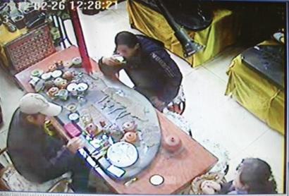 ![]() ????趁店主與其他顧客交流,他偷拿起茶座上的一只紫砂壺,左顧右盼趁無人察覺,慢慢將其放進自己的口袋中,而這只紫砂壺并不是一只普通的茶壺,曾有顧客出價數十萬元購買,但店主極其珍愛未舍得出售。昨天一早,東山路天草園茶莊店主李先生在事情過去一天后,才發現愛壺失蹤,調閱監控才發現偷茶壺的竟是前天來買茶葉的中年男顧客。 ????顧客“順手牽羊”偷茶壺 ????昨天中午12時許,記者聞訊來到天草園茶莊,痛失愛壺的店主李先生坐在茶座前愁眉苦臉,他妻子和店員們正站在電腦前查看監控錄像。通過查看監控錄像,記者看到這名偷茶壺的男子是在前天中午12時20分左右進入茶莊,一進屋便直接到茶座南側椅子上坐下,向店主李先生表示要一斤便宜一點的茶葉,李先生先為其倒上茶,隨后安排店員給他取來茶葉,并親自為他包裝,中年男子并沒有立即取貨,而是坐下來慢慢品茶。 ????錄像顯示到12時26分23秒時,一名女顧客進來,坐在茶座西側椅子上與店主攀談,這時中年男子左顧右盼趁無人注意,迅速從茶座上拿起一把紫砂壺,放在手里假裝端詳。在隨后的一分鐘內,店主一直在與女顧客交談,注意力并未放在中年男子身上,中年男子拿著紫砂壺一直在玩,并不時向四周觀察,趁店內店員與其他顧客交流時,將茶壺放到茶座底下用左手握著,隨后迅速地將茶壺偷放進自己上衣外側口袋中。 ????記者注意到,在將茶壺偷放進口袋過程中,這名男子還用右手端著茶碗喝茶,看上去非常鎮靜,頗像“老手”所為。偷壺成功后,中年男子掏出200元錢付款結賬,隨后大搖大擺走出門外。 ????丟失紫砂壺價值不菲 ????李先生介紹說,他與妻子酷愛茶藝,7年前在東山路開了這家茶葉店,喜歡茶藝的他還非常喜歡制造茶壺,中年男子偷走的那把紫砂壺價值不菲,而且很有來頭,這是他在2009年時與制壺名師一起打造的一把紫砂壺,紫砂壺制作過程非常復雜,樣式也非常精美,同時也是他第一次制造的茶壺,對于他更有別樣的意義。 ????“去年一名顧客來店內看茶壺時,看到我這把壺愛不釋手,出高價要買。”李先生極其珍愛這把紫砂壺,婉拒這名顧客,隨后這名顧客就不停加價,并當場寫下“天價”支票執意購買,不過考慮再三李先生仍未出售,此后李先生一直將這把壺當做 “鎮店之寶”。 ????發現愛壺丟失后,李先生已經報警,目前警方正在調查,同時李先生也希望知情人能夠提供線索,必有重謝。(記者 錫復春) |