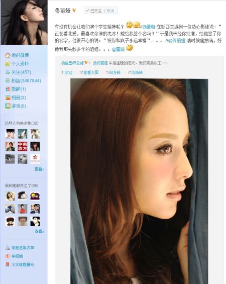 2012年3月6日19點(diǎn)23分,董璇發(fā)布微博稱自己在新西蘭遇到一位熱心影迷,錯(cuò)把她當(dāng)成佟麗婭,向她索要簽名并祝她和陳思成永遠(yuǎn)幸福。