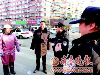 為確保執(zhí)法過程公平公正,歷下公安實行110接處警、執(zhí)法辦案全程視頻化。圖為歷下巡警一中隊民警在處警現(xiàn)場,民警左手拿的就是警用高清便攜攝像機。(見習記者 張?zhí)﹣?攝)