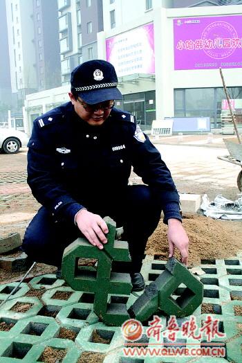 2011年11月30日,四名外地來濟人員因酒后滋事、拳打民警被歷下公安智遠派出所分別處以行政、刑事拘留。這是現(xiàn)場嫌疑人試圖搬起砸向民警的花磚。(尉偉 攝)
