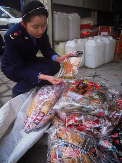 ![]() ??? 青島市工商局李滄分局查獲1102袋不合格“大辣條” 2月14日,青島市工商局李滄工商分局永清路工商所在李滄區重慶中路、振華路路段三家食品業戶查獲1102袋 偽造冒用鄭州企業廠名、廠址生產的不合格調味面制食品,案值達1500余元。據悉,這三家經營者將各被處以行政罰款2000元。 ????14日,工商李滄分局永清路工商所在其轄區內開展“亮劍”調味面制品市場清查活動,對53家經營袋裝小食品的業戶進行了拉網式檢查。在巡查中,執法人員發現重慶中路、振華路3家食品攤販所售的 “鄭州市二七區鐘濤食品廠麻辣棒”、“鄭州周小玲食品有限公司日本豆腐味辣片”、“鄭州市田湘根食品有限公司牛肉棒”都是偽造冒用鄭州企業廠名、廠址生產的不合格調味面制食品。執法人員立即展開行動,共搜出1102袋 “大辣條”,價值達1500余元,當場對這批辣條予以扣押并立案查處。(李波 廖君) |
