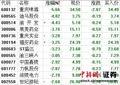 截至午盤收盤,西藏、黑龍江、重慶、山西板塊均跌幅分別為1.92%、1.81%、1.6%、1.6%。重慶板塊中,重慶啤酒領(lǐng)跌,午盤跌5.66%,另渝開發(fā)、迪馬股份、萊美藥業(yè)、ST盛達、重慶實業(yè)、福安藥業(yè)、渝三峽A跌幅超3%;而華邦制藥等7股逆勢上漲。