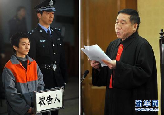 3月19日,被告人石柏魁(左圖)在法庭上聽法官(右圖)宣讀判決書。