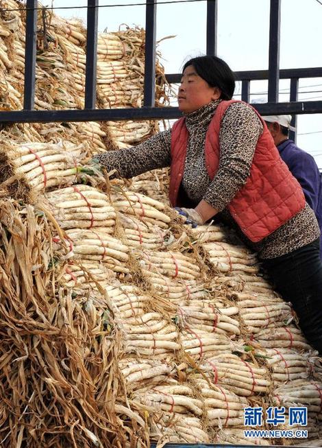在山東章丘市棗園鎮史家村,農戶在裝運一批大蔥(3月16日攝)。近期,北京、上海、廣州等地的市民突然發現,一向作為炒菜配料的大蔥突然價格高漲,一些市民反映花10元錢僅能買到兩根大蔥。漲價后大蔥的風頭甚至蓋過肉禽和雞蛋,一度成為餐桌上的“主菜”。  記者在山東部分大蔥主產地采訪發現,種植面積減少、產量降低引發的供求失衡是導致大蔥價格暴漲的主因,而流通環節過多也助推蔥價上漲。專家建議,盡快建立全國范圍內的種植及價格信息發布網絡,同時采取加大農超對接力度等措施,為快速上揚的農產品價格降溫。