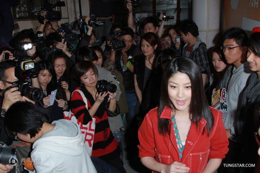今天下午大概三時陳慧琳身碎花短裙現身,小龍包睡在一個有蓋的嬰兒籃里,由鐘珍代為送上車,陳慧琳則留下接受傳媒簡單訪問。