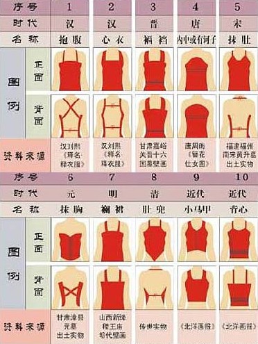 古代內衣較早的稱謂是“褻衣”。“褻”意為“輕薄、不莊重”,可見古人對內衣的心態(tài)。中國內衣的歷史源遠流長,以下所述的內衣歷史線索是從漢朝開始的。