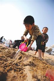 青島氣溫達22℃再創新高 昨天青島市市區最高氣溫達到22.1℃,創近日新高。島城各主要景區點出現了游客小“井噴”,海濱風景區特別是第一海水浴場至棧橋一段,游人如織。放風箏、玩游戲、曬日光、坐游艇,昨日的第一海水浴場分外熱鬧,人山人海的旅游場面在今年春節后首次出現。 仿佛從天上掉下來一樣 “今天浴場的人太多了,仿佛一下子從天上掉下來的一樣,前兩天哪有今天這么多,和夏天一樣了。 ”昨日下午1時許,當記者剛來到第一海水浴場西側采訪時,正在浴場鍛煉的李先生告訴記者。 記者注意到,從西側石階上望去,整個第一海水浴場“黑壓壓”一片,游客們在沙灘上盡情享受著日光浴帶來的歡樂。而水上摩托艇、皮劃艇、水上自行車等娛樂項目也已經展開。 “還是今天生意好,半天就有近百游客。 ”一名負責水上娛樂設施的工作人員告訴記者,假期第一天的天氣陰沉且下起了小雨,第一海水浴場人數并不多,而假期第二天則是大風不斷,不少游客被吹得不敢到海邊,人數也不是很多,但4日這一天恰好風和日麗,浴場的游客一下子才“鼓”了。 記者注意到,大部分游客都是全家出動,有的干脆在沙灘上支起來一個帳篷,一家人鉆到帳篷里面享受海邊沙灘美景。 在沙灘上,記者遇到了從濱州來青島的黃先生一家人。黃先生告訴記者,他們一家人早就想到青島游玩,這次清明小長假便將旅游目的地直接定在青島,這次旅游不僅帶上了自己8歲的兒子,還帶上了自己的父母。 “來了之后才發現衣服帶少了,白天有點冷,尤其是前兩天,凍得都不敢出門。 ”黃先生介紹,他們一家人在棧橋附近找了一家旅館住下了,本來計劃第一天就要到浴場玩,不料溫度太低,只好在棧橋逛了逛便將旅游項目轉到室內,在海底世界看了看。 “就怕第三天天氣還不好,這樣我們的小長假感覺有點浪費,好在氣溫一下子升上去了,這才帶著孩子和老人來沙灘上盡情玩。 ” 沙灘上舉辦班級聚會 在浴場沙灘中間位置,記者發現有不少游客圍了一個大圈,記者湊上去一看,原來是三十多名年輕人在聚會。只見他們圍成一個大圈,分別推薦不同的人到中間做游戲,輸了的一方則表演節目。記者一問,原來是青島某高校大學生的班級聚會。 學生小李告訴記者,他們早就計劃在小長假里到沙灘上舉辦班級活動,大家一起做游戲增加同學間的感情,但不料因為天氣不好,一直推到了第三天,“在沙灘上聚會的感覺太棒了,大家一起出來,一起玩,彼此間相互更加了解。 ”雖然是學生聚會,但周圍也吸引了不少的游客觀看,很快學生們周圍便是里三層外三層。 下午2時許,氣溫越來越高,沙灘上的太陽也開始有點灼人,女性游客撐起傘防曬,而一些沒帶傘具的游客則用衣服把自己包裹起來。雖然沙灘上氣溫不低,但下海游泳的卻很少見,“現在水溫還是太低了,有6℃就不錯了,下去太冷?!币幻ν型я{駛員告訴記者。 |