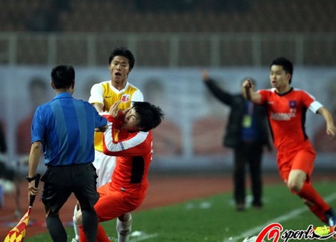 不過(guò)比賽進(jìn)行到第82分鐘,場(chǎng)上出現(xiàn)了極其不和諧的一幕。上海申鑫隊(duì)12號(hào)外援安東尼奧,在邊線(xiàn)處很難搶到球的情況下,將正在護(hù)球的青島后衛(wèi)郭亮掃倒。而后便引發(fā)了此次兩隊(duì)沖突。此時(shí),在安東尼奧身后的青島隊(duì)員鄭龍目睹了這一犯規(guī)動(dòng)作的全過(guò)程,并隨之動(dòng)怒。上去質(zhì)問(wèn)安東尼奧,并用手進(jìn)行推搡。而后,安東尼奧隨即轉(zhuǎn)身一拳打向了鄭龍的左下顎。隨即,全場(chǎng)爆發(fā)了長(zhǎng)達(dá)3分鐘的沖突。在安東尼奧回?fù)袅肃嶟堉螅瑑申?duì)隊(duì)員隊(duì)員便迅速向出事地點(diǎn)聚集,因?yàn)槭鲁龅攸c(diǎn)在客隊(duì)教練席前,所以申鑫隊(duì)教練、替補(bǔ)隊(duì)員相對(duì)反應(yīng)較快。而后安東尼奧被追擊,此時(shí)場(chǎng)面異常混亂,主裁追至安東尼奧一張紅牌將其罰下。然而沖突還未結(jié)束,由于天泰體育場(chǎng)構(gòu)建特殊,其球員入場(chǎng)通道在球場(chǎng)北側(cè),安東尼奧在被罰下后,包括場(chǎng)下替補(bǔ)球員在內(nèi)的人都朝安東尼奧襲來(lái),安東尼奧見(jiàn)狀立即跑向了離自己較近的球員通道。