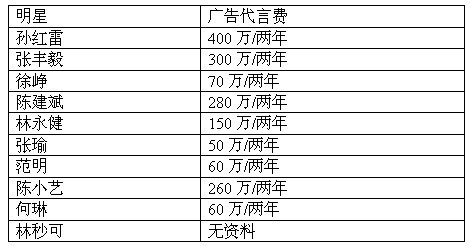 代言修正藥業產品明星的廣告代言費的網上參考價格