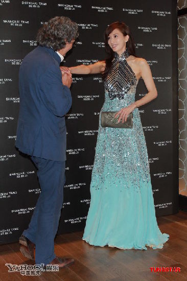 林志玲藍裙優雅亮相 被老外緊握玉手又親又摸(圖)