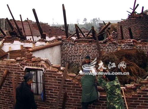 王冬全老兩口幸運(yùn)被救,但住在他家旁邊的王正發(fā)家就很不幸了,盡管他提前還做了準(zhǔn)備。王正發(fā)告訴記者,刮風(fēng)下冰雹時,他剛對妻子說要去大廳里,房子就從西向東倒塌了下去,他被樓板砸中受了些皮外傷。之后他和妻子逃出了屋外,看到住在隔壁三弟家的房子已完全倒塌,弟媳和其僅8個月大的兒子被埋在下面。之后,王正發(fā)趕緊叫人來救,十多人冒雨用手刨了幾個小時,找到兩人時小孩已經(jīng)死亡,弟媳重傷。