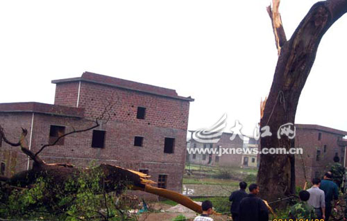 受強(qiáng)對流天氣影響,4月30日凌晨1時左右開始,吉安市境內(nèi)大部分地區(qū)普降大到暴雨,其中,安福縣、吉安縣等地遭受了11級大風(fēng)和冰雹的侵害。其中,吉安縣有4個鄉(xiāng)鎮(zhèn)遭到一場百年不遇的特大暴風(fēng)和冰雹襲擊,共造成了2人死亡14人受傷,800余棟房屋受損,其中200余棟房屋倒塌。此次風(fēng)災(zāi)尤以該縣的大沖鄉(xiāng)東汶村委會最為嚴(yán)重。當(dāng)日6時30分許,記者趕到了該縣風(fēng)災(zāi)現(xiàn)場。