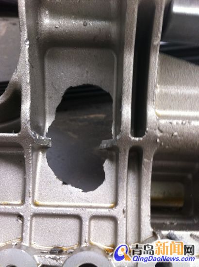 ![]() 圖為發動機上被擊穿的洞