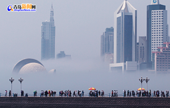 青島新聞網5月9日訊 昨天傍晚,青島沿海一線的雷陣雨天氣雖掃去部分霧霾。今日,記者在前海一線看到,霧紗依然浮裹島城。據青島市氣象預報員介紹,青島的霧季出現在4到6月份,受南風影響,島城沿海一線的能見度較低,最大霧氣時能見度不足100米。