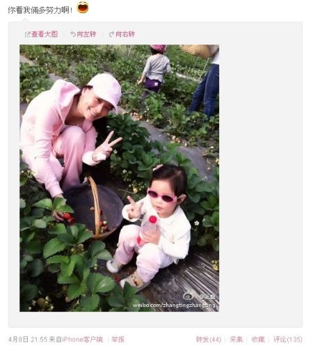 張庭帶女兒采草莓 4月8日,張庭連發3條微博,曝光一家三口外出郊游、采摘草莓的溫馨家庭畫面,久未露面的林瑞陽也現身照片之中。 4月6日還身在北京、現身東宮影劇院觀看話劇的張庭,為了趕回上海陪女兒摘草莓,4月7日起了個大早,并于08點14分發表微博感嘆道:“好困哦,為了帶女兒去采草莓,只能坐一早班機,累。” 4月8日21點55分,張庭上傳了她和女兒林家菱采草莓的溫馨合 22點整,張庭上傳了第二張照片,照片中的林家菱戴著大墨鏡,回過頭來專注看著鏡頭,手里拿著的一顆大草莓,已經被咬了一口。張庭詼諧道:“寶貝別偷懶啊!” 久未露面的林瑞陽隨后出現在22點04分發布的第三張照片中,微微發福的他笑容滿面,開著一輛農用小三輪,載著神氣的女兒,父女看起來親密十足。張庭為此圖貼切配文:“看我在鄉間小道騎車,帥吧!” 張庭于2009年年底誕下女兒林家菱,又于2012年1月6日順利產下兒子林秉翰,兒女雙全。產后的她僅一個月就神速恢復了身材,并全面復出,可謂是事業、愛情、家庭三豐收,令人艷羨。 |