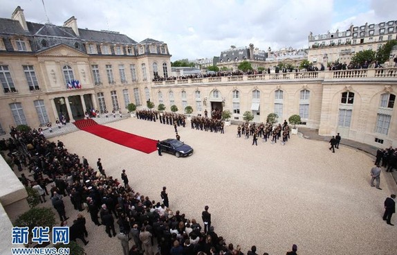 5月15日,,法國總統權力交接儀式在愛麗舍宮舉行,薩科齊向奧朗德正式移交總統權力。