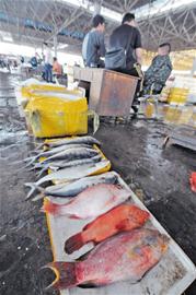 ????據青島青青信商貿公司經理張京新介紹,青島本地的鲅魚批發價在20元一斤,黃花魚7元一斤,從南方進來的紅魚一般平均批發價格在每斤10元上下,而金昌魚每斤價格在70元左右,從國外進來的魷魚批發價在每斤8元左右。張經理告訴記者,他們冷庫里的冰魚基本上是從南方和國外進來的,而南方像浙江和福建一帶有大型捕撈漁船,在南海一帶可以捕撈大量的熱帶海鮮,他們甚至到非洲、南美洲的海域捕撈作業。
