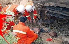 ????民警看到,受傷駕駛員滿臉鮮血,倒在變形的車廂旁邊,整個身軀被泥土、雜物所掩埋,損毀的高速護欄鐵絲網牢牢地罩在駕駛員的身上,使其動彈不得。幸運的是,受傷駕駛員的臉露在泥土外面,因而未被活埋窒息。消防隊員立即用消防鉗將纏在駕駛員身上的鐵絲網剪斷,民警和120急救人員將駕駛員身上的雜物和泥土清理干凈,然后為他注射急救藥物并送往膠南市人民醫院搶救。據醫護人員介紹,駕駛員傷勢較重,腿部、胸腹部擠壓傷比較厲害,但意識清醒,目前已脫離生命危險。