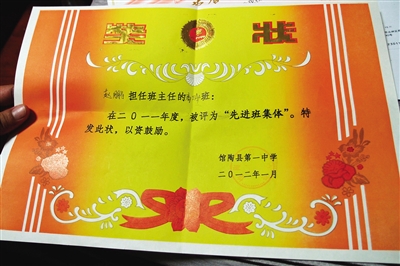 2012年1月,趙鵬擔(dān)任班主任期間,所帶的班被評(píng)為“先進(jìn)班集體”。
