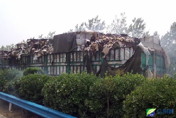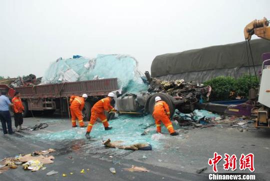 這是京珠高速信陽段交通事故現場(5月28日攝)