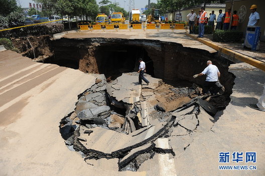 2012年5月27日,陜西省西安市朱宏路塌出一個長約15米,寬約10米,深約6米的大坑。