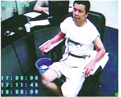 常林鋒被控制后,偵查人員正在對常林鋒進(jìn)行心理測試。資料圖片/視頻截圖