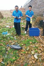 ????“這小江豚能不能吃?”就在靳主任將小江豚尸體包裹好準備帶回水族館時,有市民問道。“首先江豚是國家二級保護動物,嚴禁捕撈販賣和食用。再者,江豚的肉質發(fā)酸、發(fā)腥口感并不好,而且位于食物鏈最上層的江豚體內聚集了大量重金屬,食用對身體有害無益。”靳主任介紹說,這種死于“內傷”的江豚更不能食用,因為可能感染了病毒。(記者 王壽林 攝影報道)