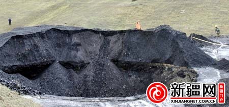 王喜明說,他剛把一鏟斗的煤裝上車廂,調(diào)轉(zhuǎn)車頭,開到5米外的煤堆時(shí),“轟”的一聲,貨車向左側(cè)傾斜,車尾猛地沉入地下,貨車連同車上3人瞬間陷了下去,煙霧過后,只在地上留下一個(gè)比載煤貨車略大的陷坑。