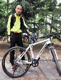 ????昨日上午記者見到蘇夷風(fēng)時,他戴著頭盔、穿著沖鋒衣、提著山地自行車匆匆從樓梯上跑下來。他很健談,時不時還會與記者開個玩笑。