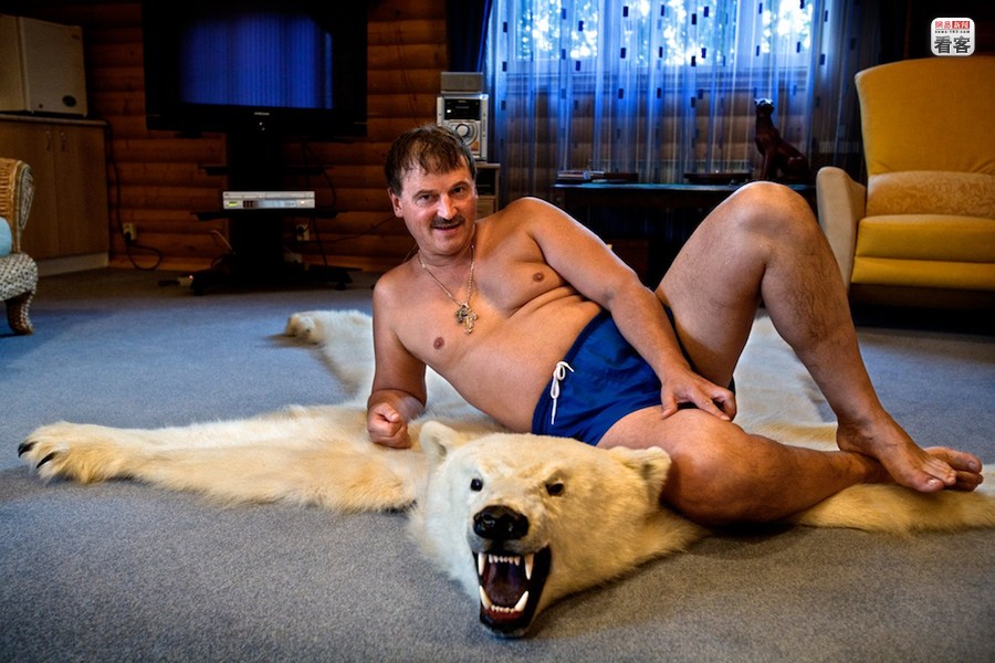 蘇聯解體后,在俄羅斯從計劃經濟向市場經濟體制轉軌時期,有一批人依靠和高層的緊密關系和政策投機,利用私有化的契機攫取財富而迅速崛起,進而控制了諸多命脈行業。2000年,俄羅斯無一人進入福布斯世界億萬富翁榜,而到2011年,則爆炸性地增加到101人。圖為俄羅斯億萬富翁謝爾蓋·維勒明科在位于莫斯科郊外的別墅中,地上的北極熊皮來自于他朋友的一次狩獵。