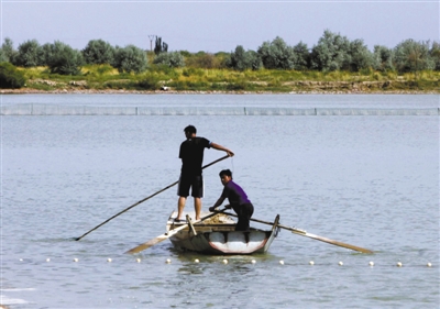 兩人正在東風水庫打魚。航天員吃的魚就來自這里。