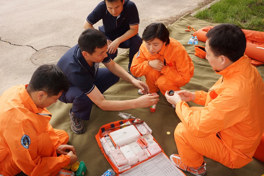 航天員教員對(duì)執(zhí)行神舟九號(hào)飛行任務(wù)的航天員乘組景海鵬、劉旺、劉洋進(jìn)行野外生存器材使用訓(xùn)練。新華社發(fā)(秦憲安攝)