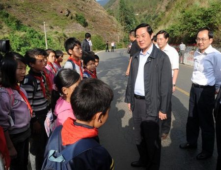 省委書記劉奇葆與涼山州鹽源縣平川小學的孩子們親切交談