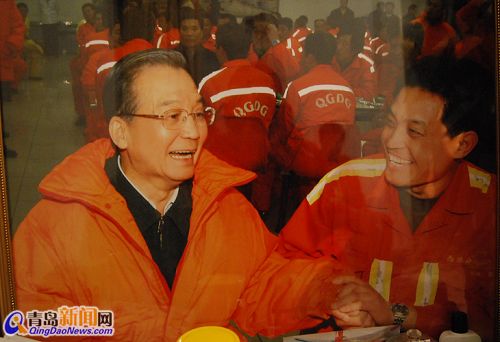 2009年元旦,溫家寶總理來青島港看望碼頭工人,與徐萬年共進午餐