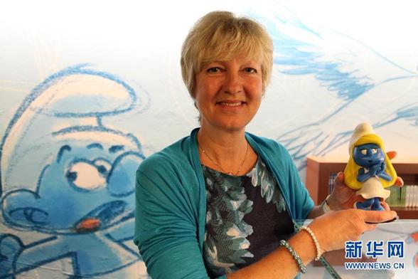 6月25日,在比利時首都布魯塞爾,“藍精靈”之父佩約的女兒韋羅尼克在“藍精靈”專賣店里展示“藍精靈”玩偶。當日是“藍精靈”之父佩約的誕辰日,也是“全球藍精靈日”。首家“藍精靈”專賣店在比利時首都布魯塞爾市中心的卡通塑像博物館里落成。“藍精靈”是風靡世界的比利時卡通形象,“藍精靈”系列漫畫也在80多個國家被翻譯成35種語言。