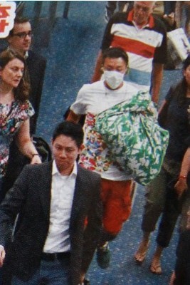 劉浩龍獨自拿行李