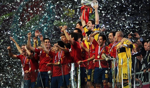 西班牙在基輔奧林匹克球場4-0橫掃意大利成功衛(wèi)冕,再次捧起德勞內(nèi)杯