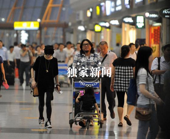 高曉松一家三口機場秀甜蜜 80后嬌妻扮潮范(組圖)