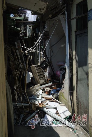 圖為事發(fā)房屋的金屬防盜和空調外機都被炸壞,墻體倒塌。